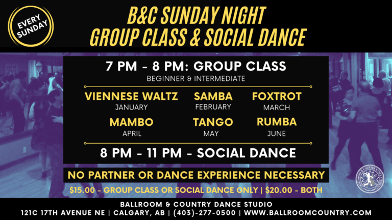 B&C Sunday Group Class & Social Dance & Dance for Fun & Health events